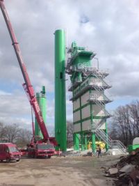 Asphaltwerk-II Montage Asphaltmischwerk Höhe Kamin: 40m größtes Bauteil: 36m schwerstes Bauteil: 32to größter Autokran: 200to